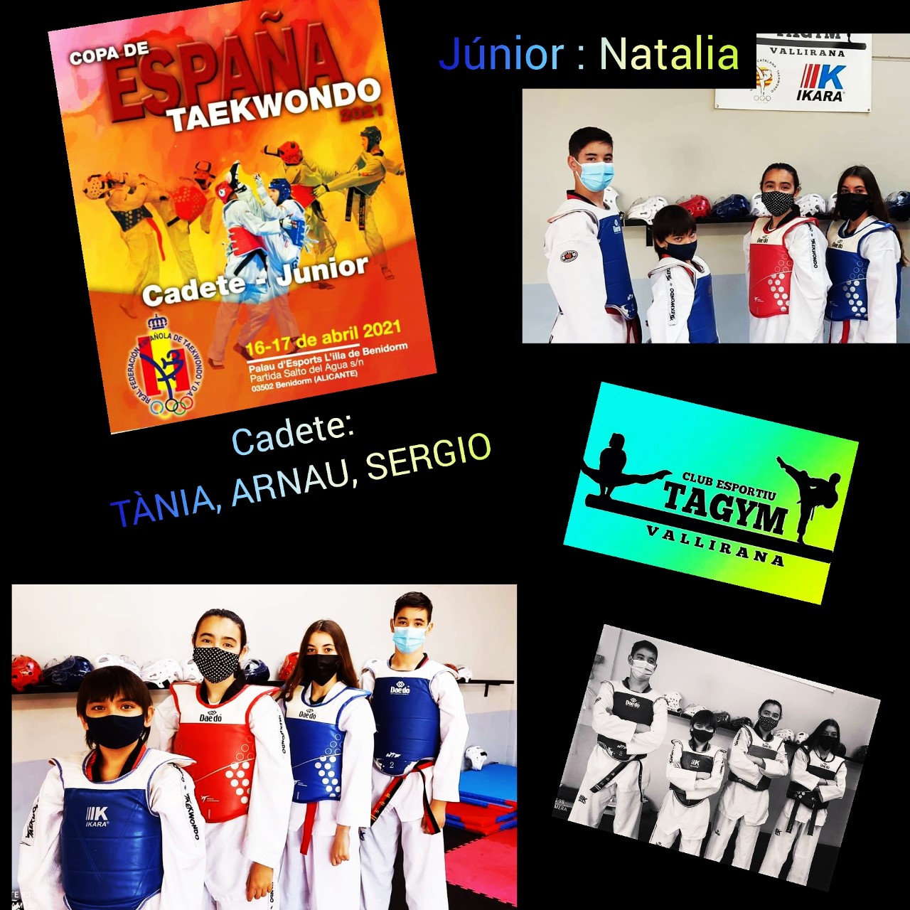 Nuestro alumnos TANIA, ARNAU, SERGIO Y NATALIA, este fin de semana, dias 17 y 18 de Abril, irán al campeonato de España de Taekwondo, categorías CADETE y JUNIOR.